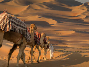 When we say civilization, we are talking about sophisticated arrangements of people living together, not hunter/gatherers or simple agrarian settlements, not just a few people living in a few huts. About 5,500 years ago in the Near East, there was a dramatic evolution of humanity from mostly nomadic hunter/gatherers -- people who spend their whole day looking for food -- to people who were able to domesticate livestock and crops. This meant they could raise animals to eat them or to use them for their milk and their hides, and to plow the land to grow crops.