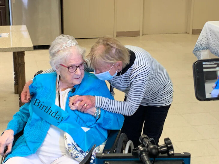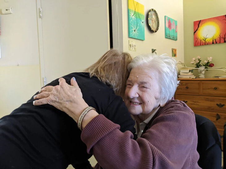 Last month, she and Stephen decided to fly to Toronto, where Gerda lives in a retirement home. The day after they arrived - May 7, 2022 - was Gerda’s 98th birthday and also Canada’s Mother’s Day. The moment could not have been more fortuitous. Staff at Gerda’s home decorated their party room for the big event in blue, Gerda’s favorite color. Gerda donned a crown and sash, and entered the room, ready to meet her long lost daughter at last.