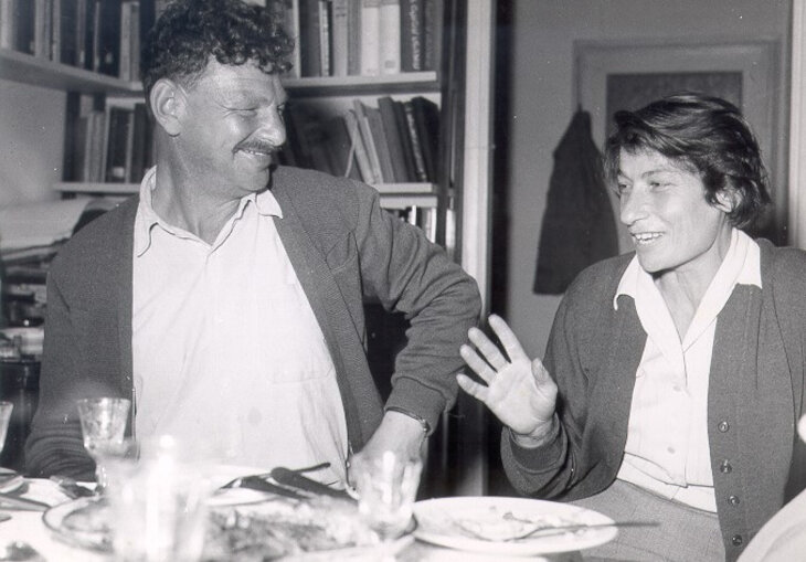 Zivia Lubetkin and Yitzhak Zuckerman in their home in Kibbutz Lohamei HaGeta'ot. (Photo: DA Harissiadis, from archive of the Ghetto Fighters’ House)